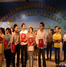 大学英语教研室积极开展学生竞赛活动和课外活动,以此培养学生学习兴趣,活跃学习气氛。每年组织举办“全国大学生英语竞赛”、“大学生英语写作比赛”、“大学生英语演讲比赛”和“大学生英语读报大赛”,并协办“英语戏剧节”等校园活动。学生的英语能力在各级各类竞赛活动中不断得到锻炼和提高,并在省级和全国竞赛中多次取得不俗的成绩。近三年在各类省级英语竞赛活动中,我校非英语专业学生有20人次先后获得过特等奖、一等奖、二等奖和三等奖。