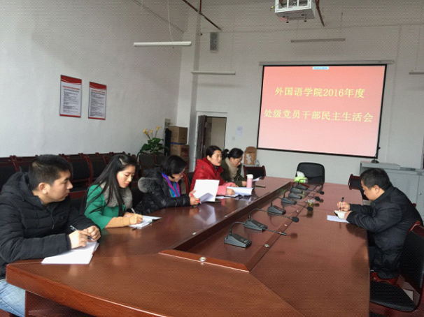 2017年1月12月9日民主生活会在外国语学院会议室召开。学院党委领导班子全体成员、校党委组织部副部长吴波同志、外国语学院各党支部书记参加会议。会议由学院党委书记张婷婷同志主持。