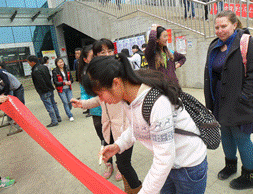 活动现场不仅有外国语教育系的同学积极参加,其它院系的同学以及外籍教师Kelly也热情地参加了签名。