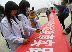 2014年3月13日中午12:00,外国语教育系在花溪新校区举行了党的群众路线教育实践活动“明礼知耻·崇德向善”签名活动。