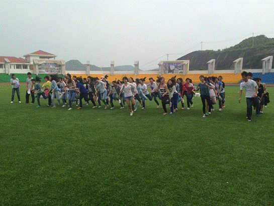 为激发广大学生体育锻炼的主观能动性,引导和帮助他们形成良好的体育锻炼习惯、养成良好的生活习惯、提升身体素质,并从中磨炼坚强意志、培养良好品德和拼搏精神,外国语教育系团总支响应校团委关于开展“走出宿舍”、“走下网络”、“走进操场”活动的号召,在花溪校校区足球场举办了趣味素质拓展活动。2014年5月17日,经过精心筹备的各项户外活动如期开展。本着自由结伴、自愿参加的原则,同学们开展了坐地起身、链接加速等增强团队凝聚力的趣味活动,还获得了系部为参加活动的同学准备的丰富的小奖品。这次获得极大地鼓励了广大学生去,让他们积极地亲近自然,加强锻炼,于行走中找寻青春,在运动中感受快乐,以矫健的身姿为校园的春天增添一道亮丽的风景。